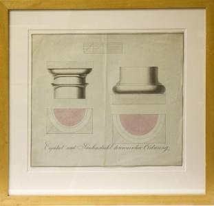 Etude d'une colonne toscane, dessin d'architecte, lavis sur papi...