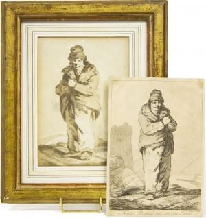 Matelot provençal avec son caban, lavis sur papier, 16x5x11 cm....