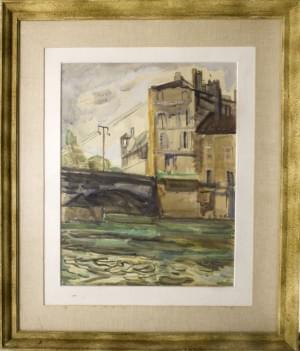 Vue de Paris, aquarelle sur papier, signée G.Adam, 18,5x31 cm