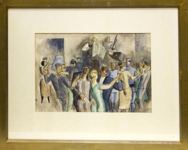 Bal musette et la valse à l'Epvers, deux aquarelles et encres su...