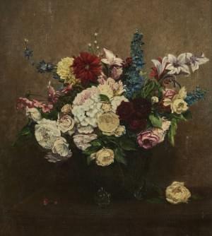 Bouquet de fleurs, huile sur toile, 69x61 cm