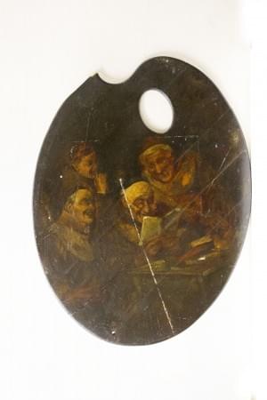 Chœur de moines, huile sur palette de peintre, 60x45 cm