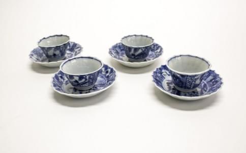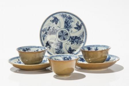 Porcelaine blanc bleu à décor de fleurs stylisées, marque archaï...