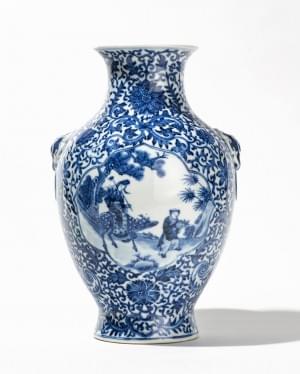 Porcelaine émaillée bleu et blanc à décor de personnages dans un...