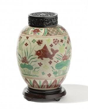 Porcelaine à décor de carpes et plantes aquatiques, signée, Japo...