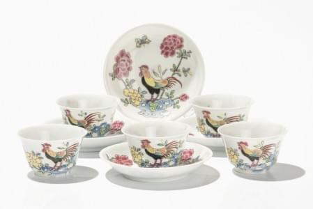 Porcelaine à décor polychrome de fleurs et coq, Chine dynastie Q...