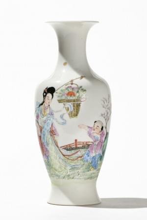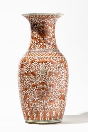 Porcelaine à décor de rinceaux rouges, Chine, XIXe s, H 45 cm