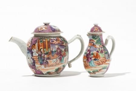 Porcelaine à décor mandarin à motif de personnages sur une terra...