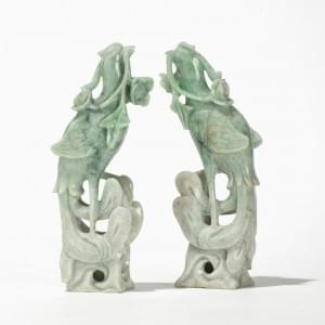 L'une en lapis lazuli à inclusions or, l'autre en jaspe, Chine,...