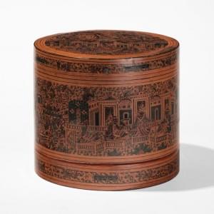 Laque rouge et noire à décor de scènes animées, Birmanie, XIXe s...