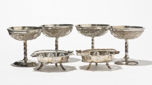 855. Ensemble de quatre coupes à vin à décor de dragons