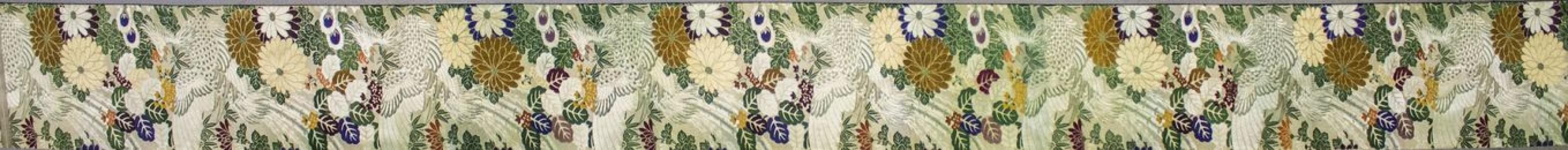 Soie brodée à décor floral et feuillagé, Japon, Xxe s, 32x398 cm