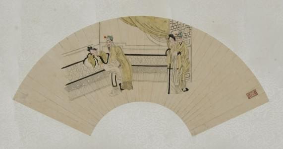 Deux scènes érotiques, aquarelle et encre sur papier en forme d'...