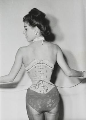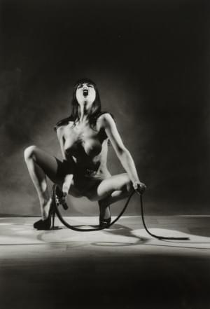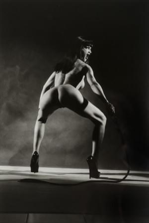 Jeune femme aux collants résilles, tirage argentique en noir et...