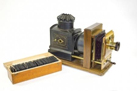 1026. Projecteur dans sa caisse d'origine et ensemble de négatifs sur...