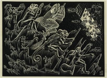 Sans titre 1932), bois gravé, signé, 32,24x17 cm. Tiré du livre...