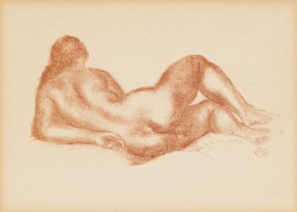 Nu féminin de dos, lithographie façon sanguine sur papier, 27x18...