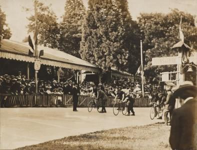 Grande photographie du départ d'une course cycliste en tirage ar...