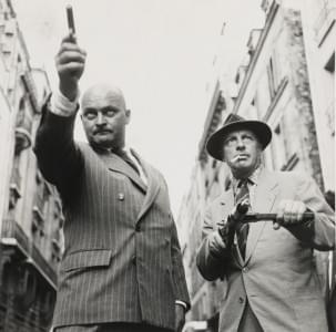 Portrait du peintre Louis Dunki et homme à cheval, deux photogra...