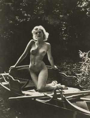 Nu sur une barque, tirage argentique en noir et blanc, 19,5x15 c...