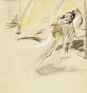 La mort de Mimi dans La Bohème de Puccini, aquarelle et gouache...