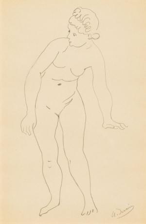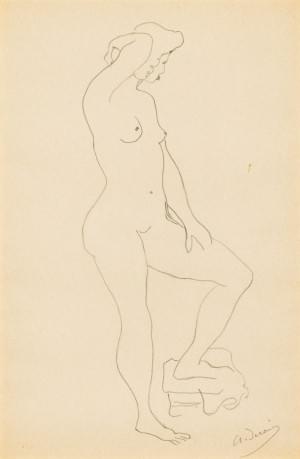 Nu féminin debout, mine de plomb sur papier, signée, 40x26 cm
