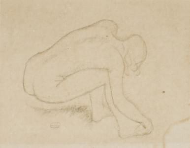 Nu assis de dos, fusain sur papier, monogrammé, 25x32 cm
