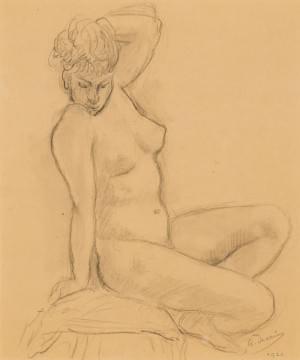 Nu assis, mine de plomb sur papier, signée et datée 1922, 36x30...
