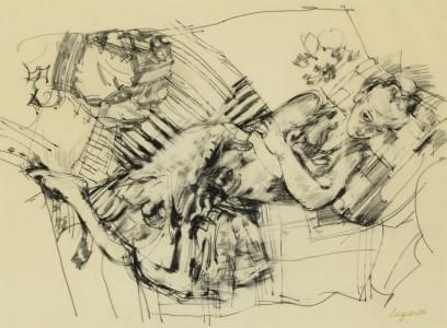 Femme allongée, fusain sur papier, signé, 30x41 cm