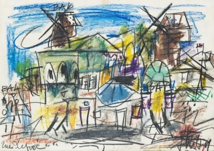 Rue Lepic, fusain et pastel sur papier, signé et situé, 27x38 cm