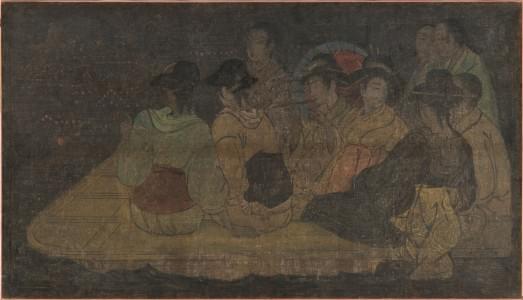 Japonaises, scène nocturne, huile sur toile, 238x137 cm