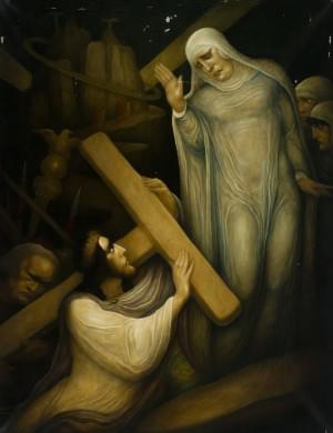 Le Christ rencontrant la Vierge Marie sur le chemin de croix, hu...