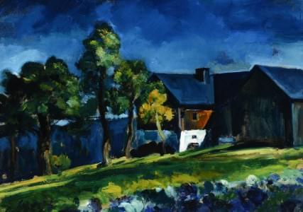 Paysage à la ferme, huile sur carton monogrammée et datée 23, 71...
