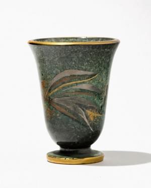 Petit vase à décor de feuillage sur fond vert, céramique émaillé...