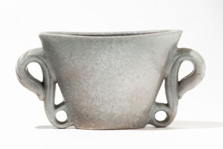 Vase ovale à anses latérales à enroulement, céramique à engobe b...