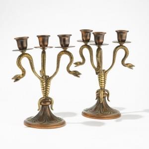 1116. Paire de bougeoirs dans le style d'Edgar Brandt (1880-1960)