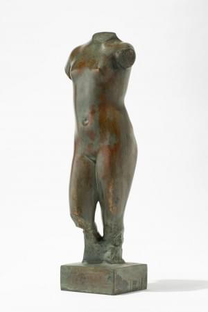 Torse féminin, bronze à patine verte et rouge, signé, H 53 cm