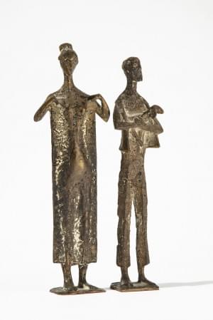 Couple de bergers, deux bronzes, monogrammés et l'un daté 57 l'a...