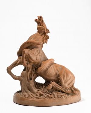 Cheval attaqué par un serpent, terre cuite, signée A. Jansen, H...