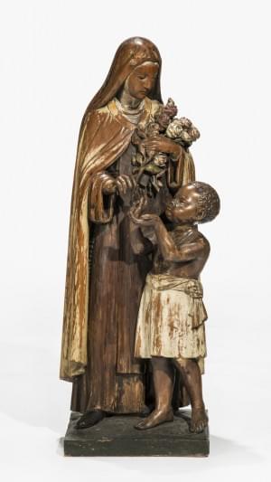 Sainte Thérèse de Lisieux accompagnée d'un petit enfant, bois sc...