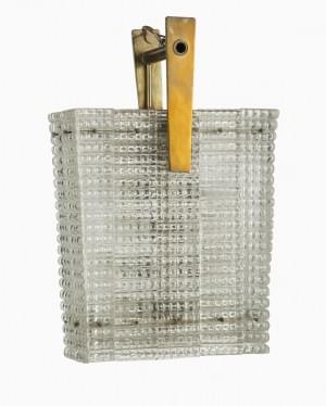 Verre blanc, laiton et métal laqué noir, France, circa 1960, H 7...