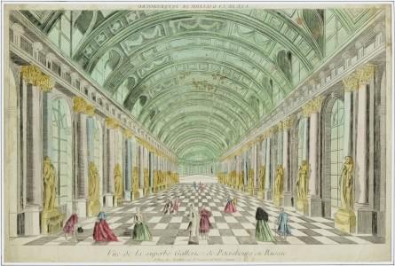 Vue de la galerie de Saint-Pétersbourg en Russie, gravure aquare...