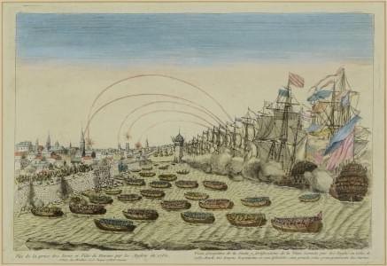 Prise de la Havane par les anglais, gravure aquarellée, 30x43 cm