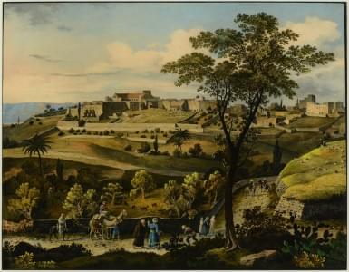 Vue de Bethléem, gravure gouachée, circa 1800, 32x40 cm