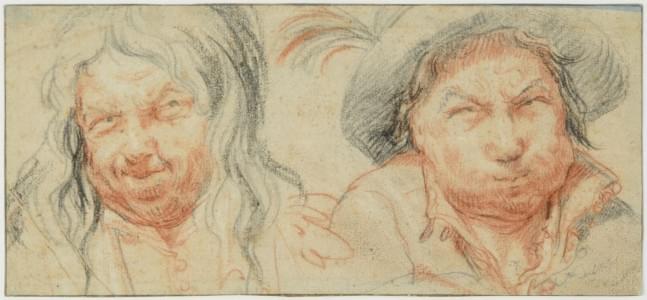 Deux têtes d'homme, sanguine et fusain sur papier, 11x25,5 cm