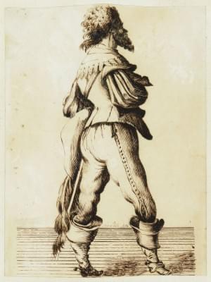 Mousquetaire, plume sur papier, signé, 33x25 cm