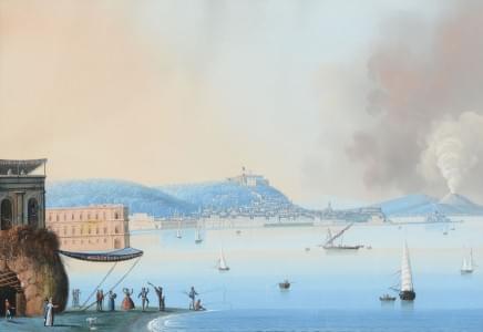 Vues de Naples, paires de gouaches sur papier, 26,5x41 cm