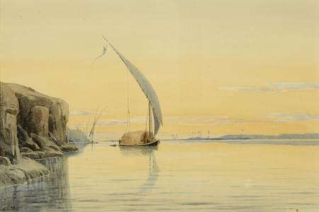 Felouque sur le Nil, aquarelle sur papier, signée, 32x47