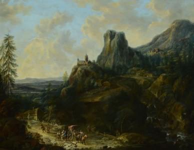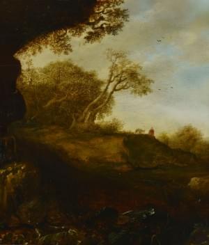 Paysage de rochers animés, huile sur panneau, 28x23 cm