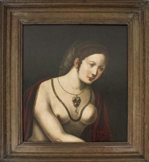 Femme à la poitrine dénudée, huile sur panneau, 40x30 cm
